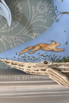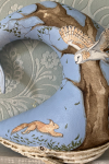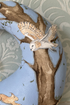 Introducing a one-of-a-kind whimsical soft sculpture that will enchant your space with its playful and artistic charm! This hand-sewn whalte, brought to life with a delightful autumn theme, is a fusion of fantasy and nature. Imagine a gently giant of the sea, but with a twist- its fabric body is hand-painted with intricate details of an owl flying in the trees and a squirrel bounding over the leaves., bringing the magic of the forest to an unexpected marine form.