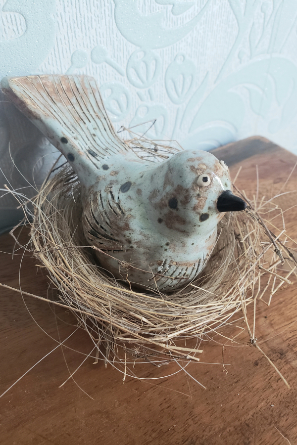 Mes premiers oiseaux bleus tachetés en céramique sont maintenant là. Je suis très enthousiaste à l'idée de vous les offrir. Ils sont faits en terre cuite et sont creux mais pas fragiles. Ils sont d'abord faits à la main, puis cuits à la bisque, puis émaillés et cuits à nouveau pour leur finition finale.