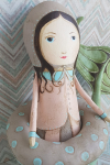 Here we have Miriam, a folk art inspired art doll. She is hand painted in professional acrylics and the waxed to give an aged feel to her. She has a pretty smile on her face (which is varnished with matt varnish). She hangs on the wall.