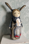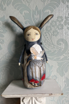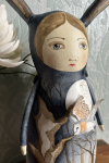 A gorgeous folk art inspired art doll. She is truly unique and has a midnight woodland theme with a barn owl flying across the moon.
