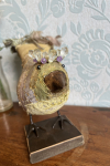 Hand-stitched from layers of richly textured textile, this small but spirited bird looks as though it has just paused mid-thought - perhaps about something important, or perhaps about nothing at all.