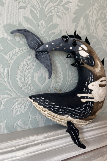 When you paint from you heart and soul something magical happens, and this is it. My latest whale, inspired by what is around me and in my dreams. Made in calico and firmly stuffed, then painted in professional acrylics and finally finished in varnish. All handmade and all my own designs. These are all one off's the designs are all hand drawn for each whale so no two are identical. They may be similar but not identical so you have a unique piece of art. They are quite the talking point and would look lovely anywhere in your home. So whether you are adding to an existing collection or you are starting out on your journey then this piece may be just what you are after. Especially like me if you are a whale lover.