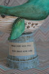A gorgeous soft sculpture OOAK folk art inspired whale. He is my usual calico body, wool stuffed and painted in professional acrylics. He is matt varnished. He stands on a paper machee and painted flower pot! He is also painted on both sides of his body so can be displayed either side.