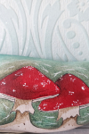 A new folkart inspired whale added to the collection. This guy is a gorgeou teal colour, hand mixed so totally unique. He is made from calico and his jaw has air dry clay with a few added barnicles. He has some gorgeous red fly agric mushrooms painted on his side and a should of fishes swimming across his body.