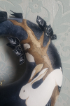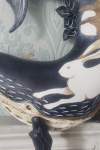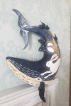 When you paint from you heart and soul something magical happens, and this is it. My latest whale, inspired by what is around me and in my dreams. Made in calico and firmly stuffed, then painted in professional acrylics and finally finished in varnish and antique wax. All handmade and all my own designs. These are all one off's the designs are all hand drawn for each whale so no two are identical. They may be similar but not identical so you have a unique piece of art. They are quite the talking point and would look lovely anywhere in your home. So wether you are adding to an existing collection or you are starting out on your journey then this piece may be just what you are after. Especially like me if you are a whale lover.
