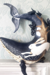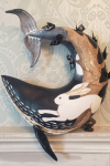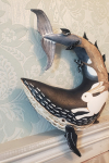 When you paint from you heart and soul something magical happens, and this is it. My latest whale, inspired by what is around me and in my dreams. Made in calico and firmly stuffed, then painted in professional acrylics and finally finished in varnish and antique wax. All handmade and all my own designs. These are all one off's the designs are all hand drawn for each whale so no two are identical. They may be similar but not identical so you have a unique piece of art. They are quite the talking point and would look lovely anywhere in your home. So wether you are adding to an existing collection or you are starting out on your journey then this piece may be just what you are after. Especially like me if you are a whale lover.