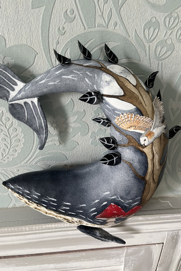 'Mushroom dreams' folk art soft sculpture whale.